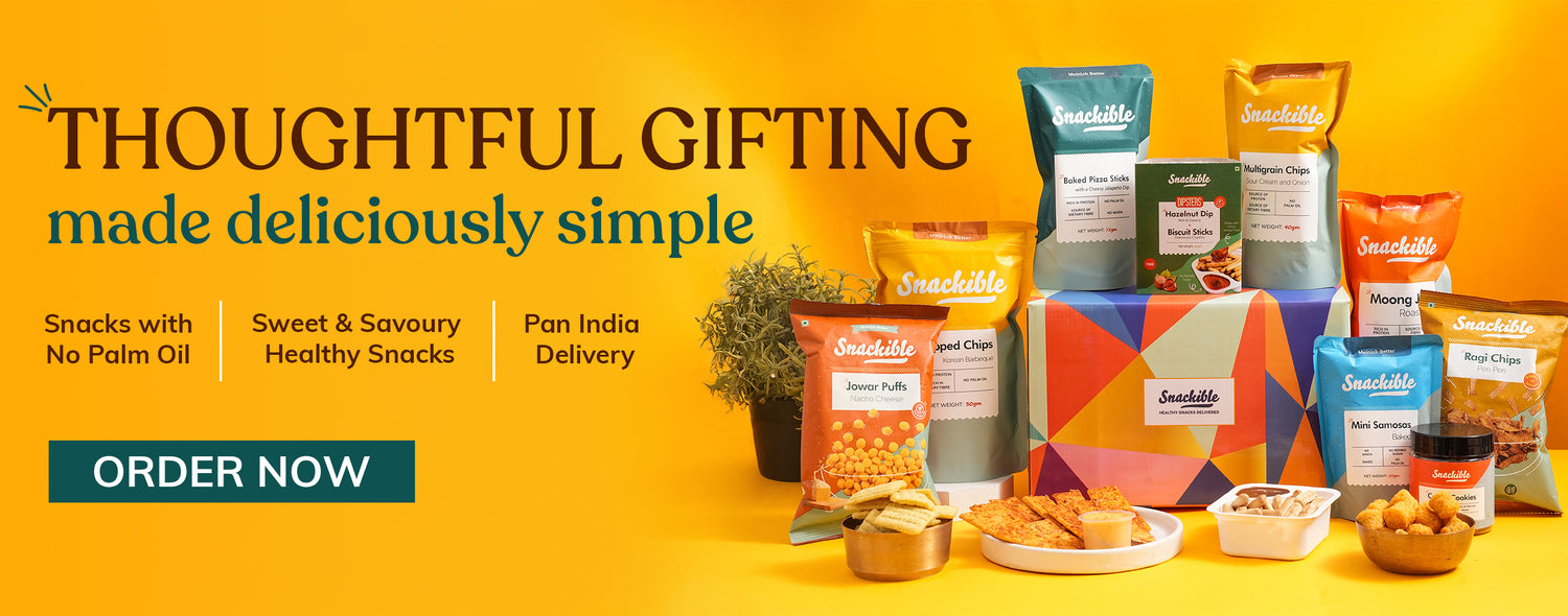 Gift your loved ones the goodness of health with Snackible’s specially curated & beautifully designed gift boxes. Our vibrant gift boxes illustrates the philosophy of diversity in our products & includes our best selling snacks!