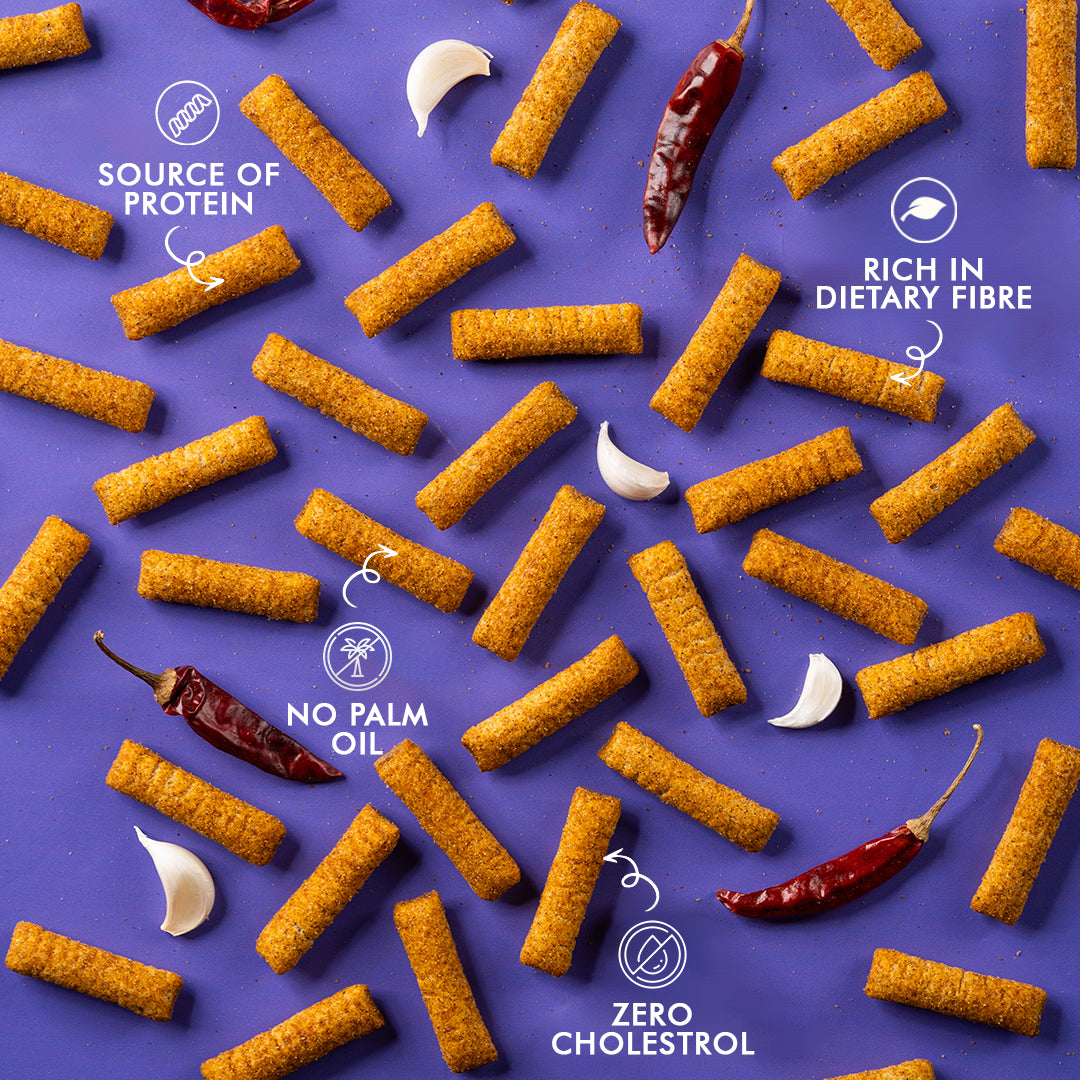 Craving a crunch that's good for you? Our Spicy Garlic Ragi Sticks are the talk of the town! These crunchy sticks are bursting with fiery garlic flavour that'll tantalise your taste buds, all while packing a punch of dietary fibre to keep you feeling satisfied and fabulous. Forget trans fats, cholesterol, and that sketchy palm oil. These Ragi Sticks are the perfect healthy snack you're looking for!