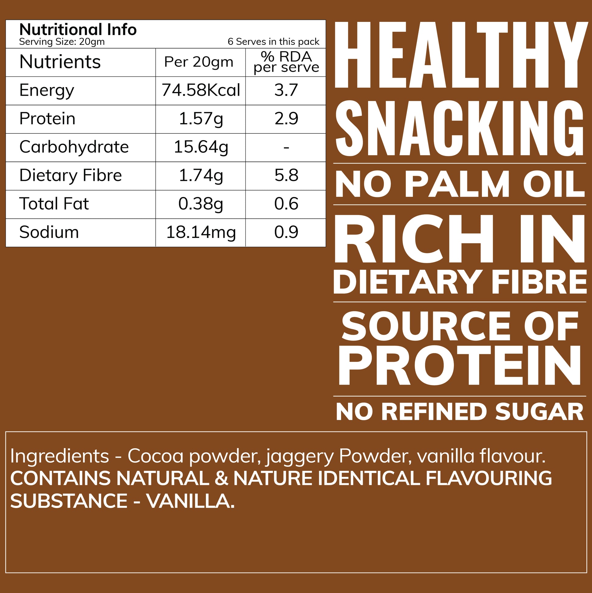 Ingredients List: Cocoa powder, jaggery powder, vanilla flavour