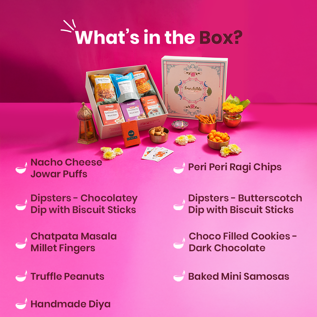 Make this Diwali flavourful and healthy with Snackible’s Diwali Shagun Hamper, a festive curation packed with flavour and free from junk. Perfect for family, friends, or anyone who loves to snack, this hamper is a thoughtful twist on the traditional shagun ke lifafe.