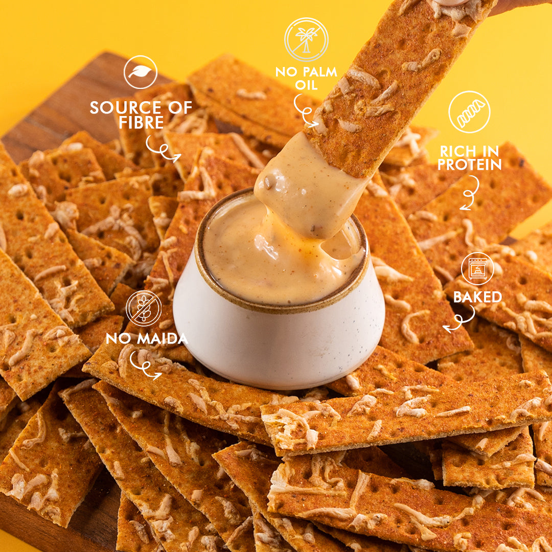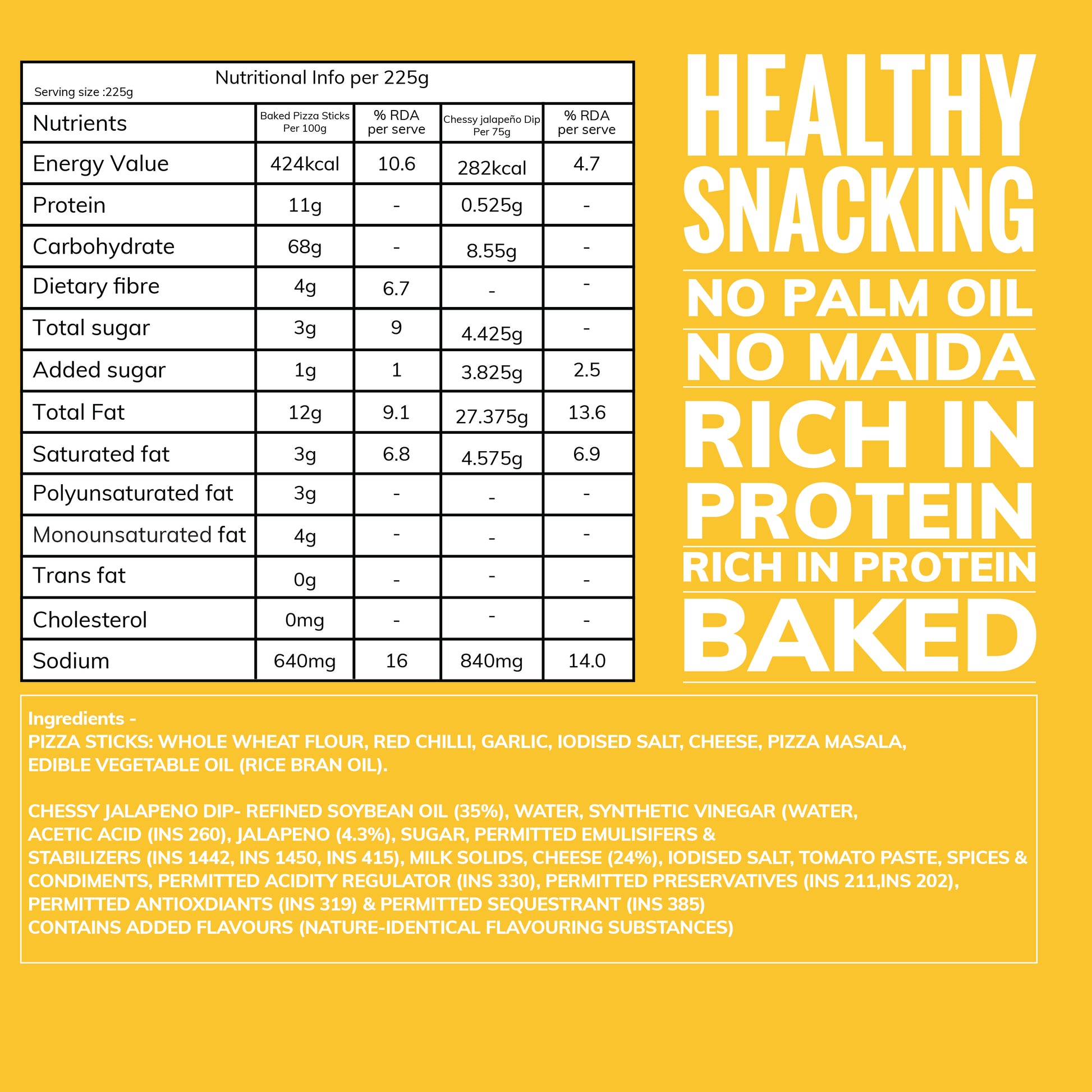 These healthier Baked Pizza Sticks are made with no maida but whole wheat flour! Sprinkled with a light chili-garlic-pizza flavour they're sure to satisfy your pizza cravings healthily. Accompanied by our creamy and tangy Cheesy Jalapeño Dip made with low-fat mayo, this duo makes for a guilt-free indulgence that will leave you saying “one more bite, please".